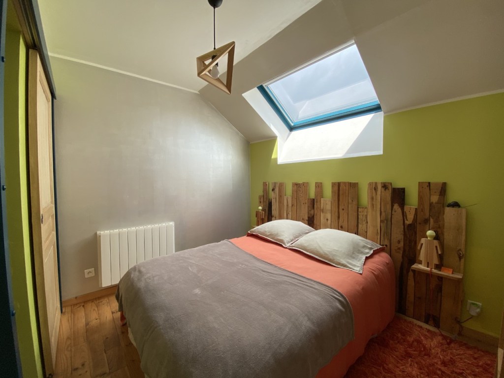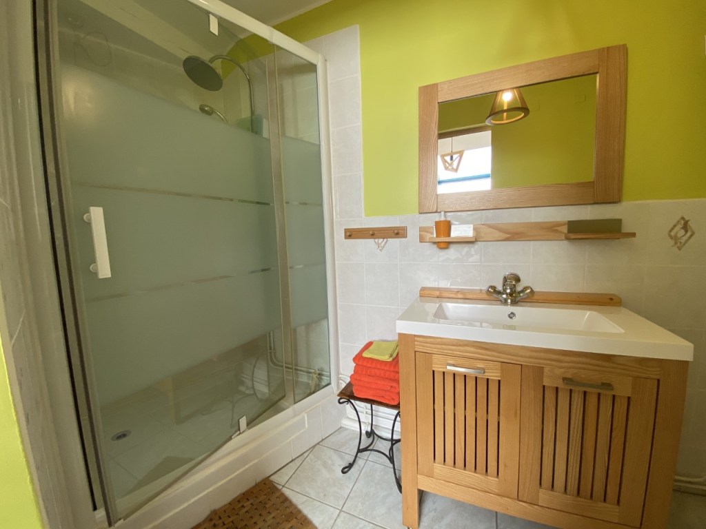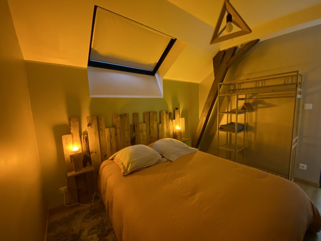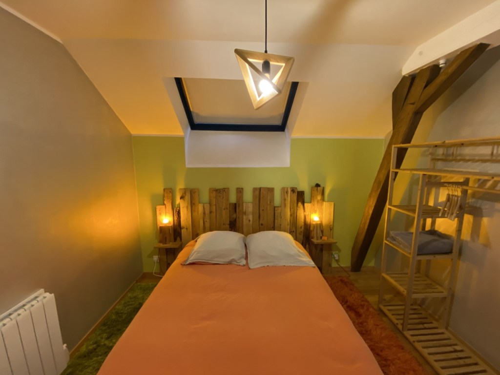 Chambre pour 2 personnes avec un lit double, elle possède sa salle de bain privée avec douche multi jets, lavabo et toilette, serviettes et draps fournis.